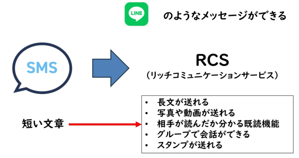 つまりRCSは、「電話番号だけで、LINEのようなやり取りがしやすくなる新しいメッセージ機能」と考えると分かりやすいです。