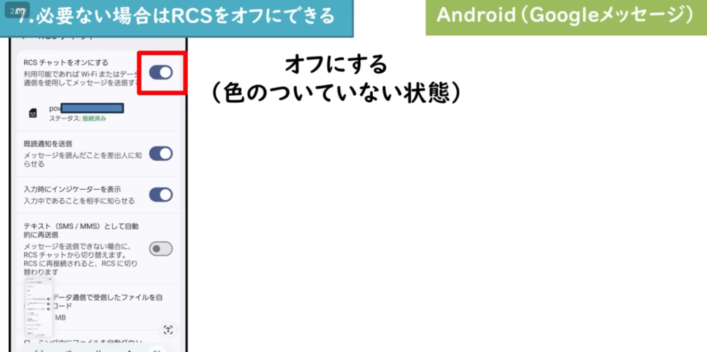 7. 必要ない場合はRCSをオフにできる