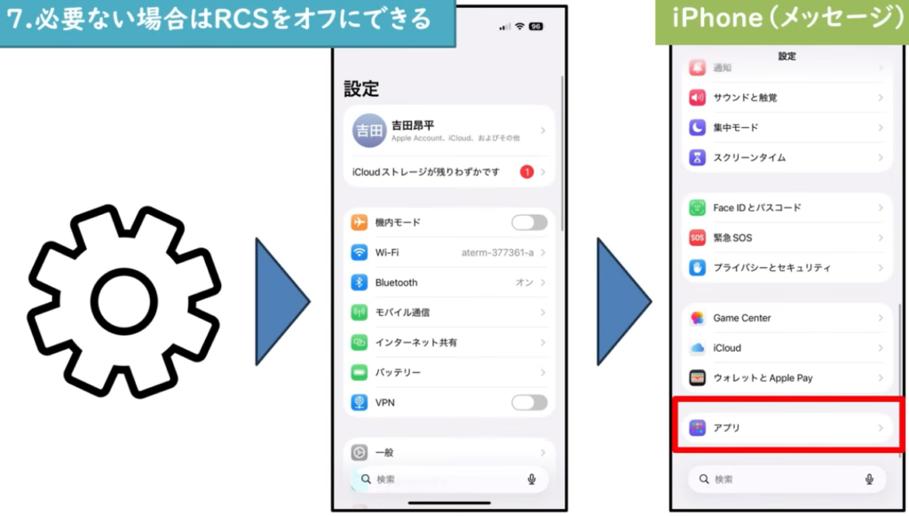 Appleもこの手順でRCSメッセージのオン/オフを切り替えられると案内しています。RCSを使うにはiOS 18と対応通信事業者が必要で、設定項目が表示されない場合は利用できないことがあります。