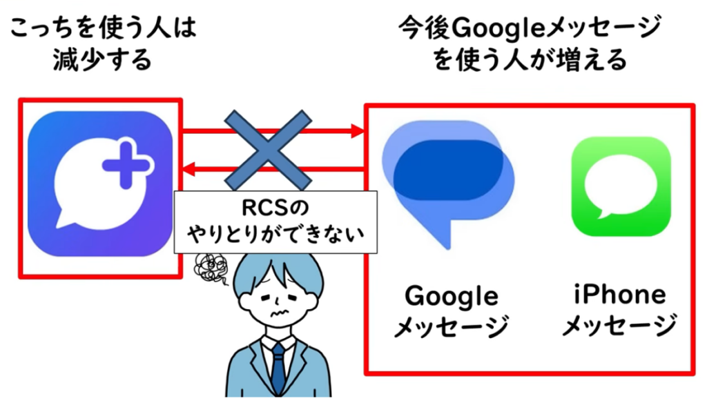 ソフトバンクは、AndroidではGoogle メッセージ、iPhoneではiOSのメッセージアプリからRCSを利用すると案内しています。つまり、今後は「Google メッセージ」や「iPhoneのメッセージアプリ」でRCSを使う人が増えていく流れと考えられます。