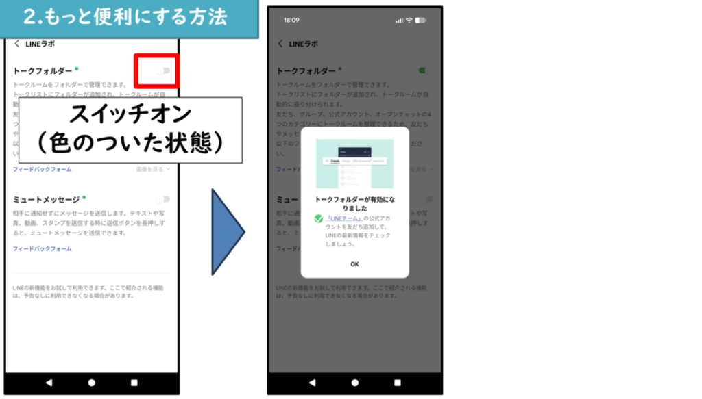 - 「トークフォルダー」のスイッチをオンにする