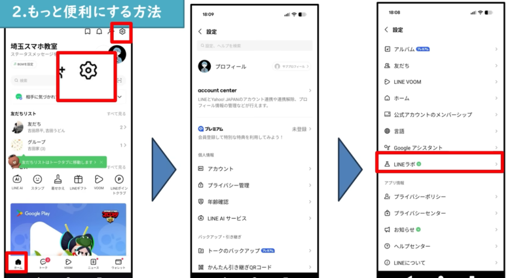 - 画面を下にスクロールして「LINEラボ」を開く